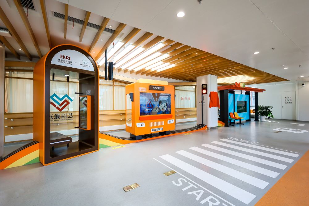 项目由香港兴业国际集团全额捐赠,上海拥爱公益服务社协同同济大学部分师生提供免费设计,累计改造总面积达19100平方米,本次改造面积为182平方米,位于上海市养志康复医院儿童康复楼二楼,每日服务超过200人次,主要面向孤独症、唐氏综合征、脑瘫等特殊儿童。空间创新融合多媒体互动系统与交通实景模拟场景,通过游戏化、情境化的训练方式,帮助儿童提升危险识别能力、社交适应能力及生活自理能力,打造集康复、教育、游戏于一体的多功能支持空间。