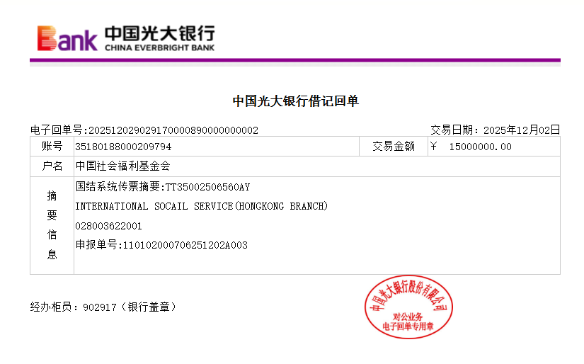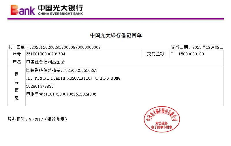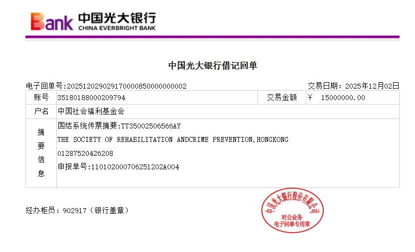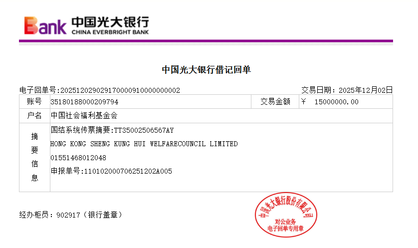 中国社会福利基金会关于“香港大埔火灾紧急救援行动”募捐进展的公告(第7号)