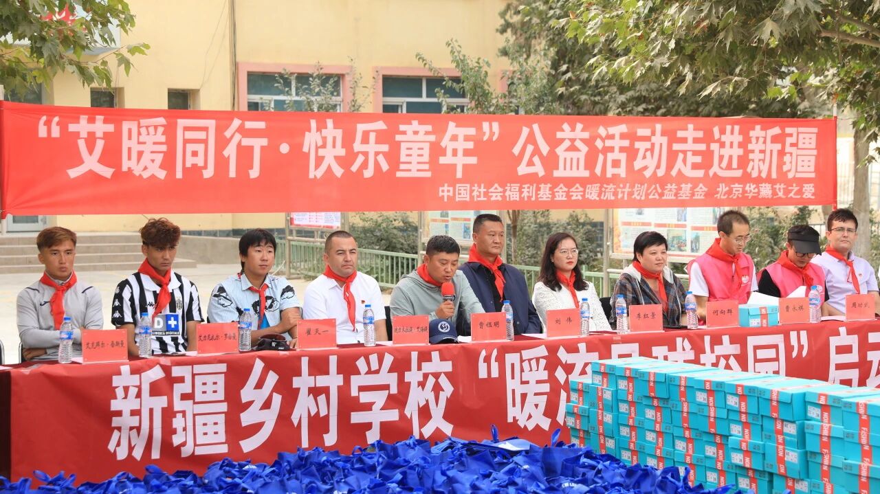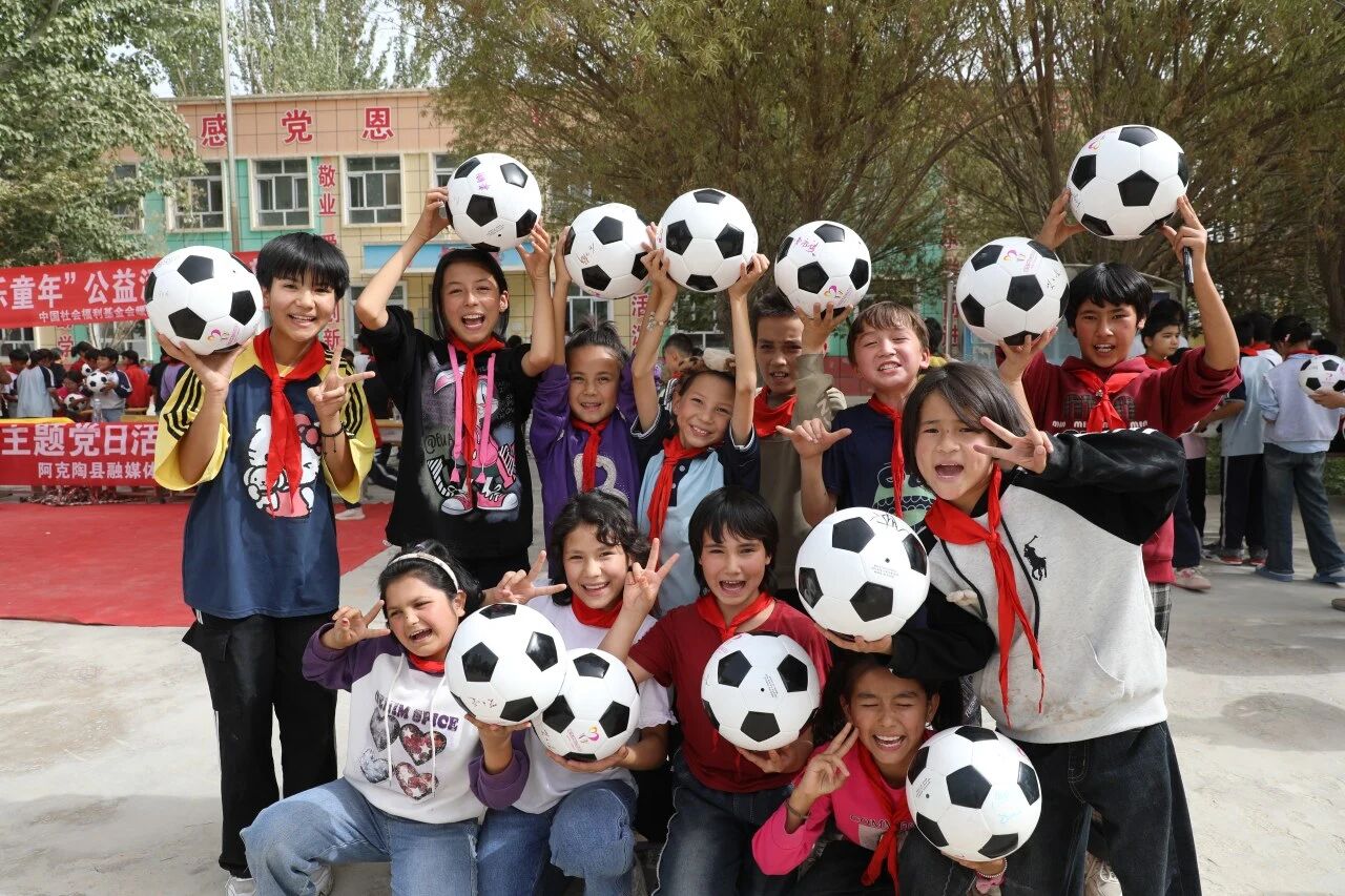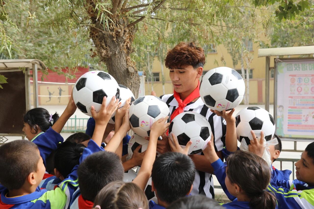 9月8日至11日,中国社会福利基金会联合中国探险协会体验教育分会、北京华藏艾之爱在阿克陶县成功举办了“艾暖同行・快乐童年”捐赠活动,先后赴阿克陶县、阿图什市、乌恰县的四所乡村小学,为近千名学生送去定制运动鞋和足球。此次活动特别邀请了国家队足球运动员艾力尼扎尔・罗合曼、艾克拜尔・吾斯曼和全国帆船冠军翟天一开展“燃享计划·冠军公益课堂”,这场跨越千里的关怀,不仅补齐了边疆乡村体育教学的“装备短板”,更以公益为纽带,在边疆大地书写下多元同心、共筑梦想的大爱篇章。