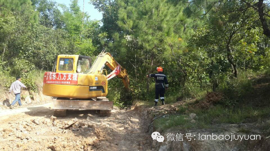 15:30蓝豹救援队吕胜华带队的工程机械分队将芒冒村进村公路抢通。并转往芒朗村进行新的道路抢修。