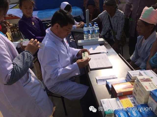 8:00蓝豹救援队南华博爱医疗分队开始为灾区村民进行复查、换药,同时为偏远村寨的村民进行健康体检。