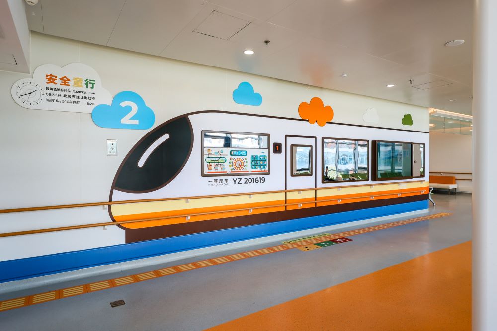 项目由香港兴业国际集团全额捐赠,上海拥爱公益服务社协同同济大学部分师生提供免费设计,累计改造总面积达19100平方米,本次改造面积为182平方米,位于上海市养志康复医院儿童康复楼二楼,每日服务超过200人次,主要面向孤独症、唐氏综合征、脑瘫等特殊儿童。空间创新融合多媒体互动系统与交通实景模拟场景,通过游戏化、情境化的训练方式,帮助儿童提升危险识别能力、社交适应能力及生活自理能力,打造集康复、教育、游戏于一体的多功能支持空间。