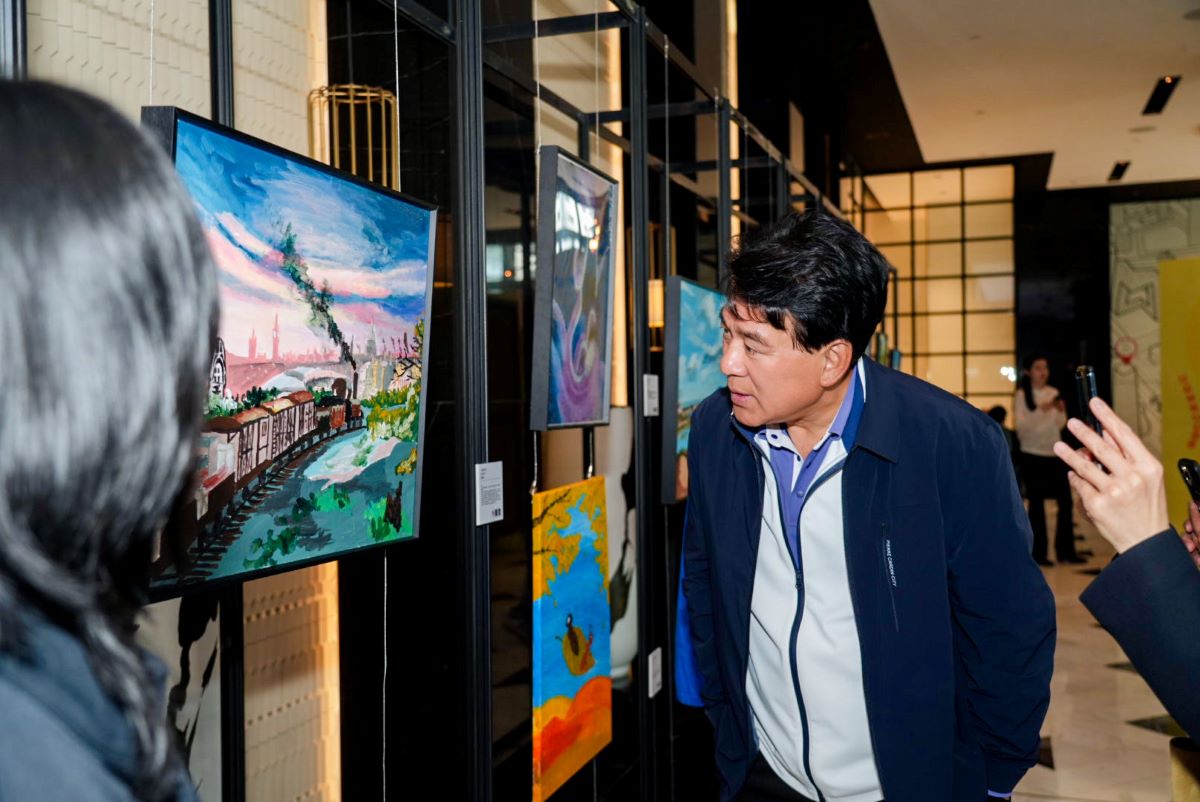 “当语言无法表达时,画笔成了他们最好的声音。” 展览现场,著名演员朱时茂先生作为神秘嘉宾与孩子们亲切互动,他真诚呼吁公众:“他们不是活在自己的世界里,他们只是用不同的方式与我们相遇。” 此外,“星光益彩”乐队的孩子们更与酒店员工同台演奏,用跨越语言障碍的音乐,让所有人见证了他们专注而闪亮的时刻。