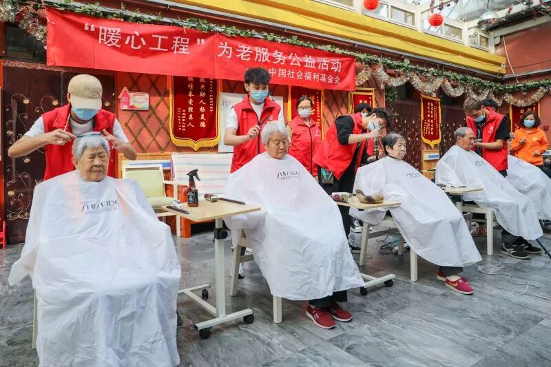 受疫情严控的要求,北京地区的养老机构实行封闭管理,这也使得养老院老人的日常护理服务受到不少影响,很多老人,尤其是失能、失智,以及长期卧床的老人,已经很久没有理发了。此次,在重阳节即将到来之际,中国社会福利基金会暖心工程项目邀请7位美容美发和摄影服务行业的志愿者,走进养老院为老人解决实际困难。