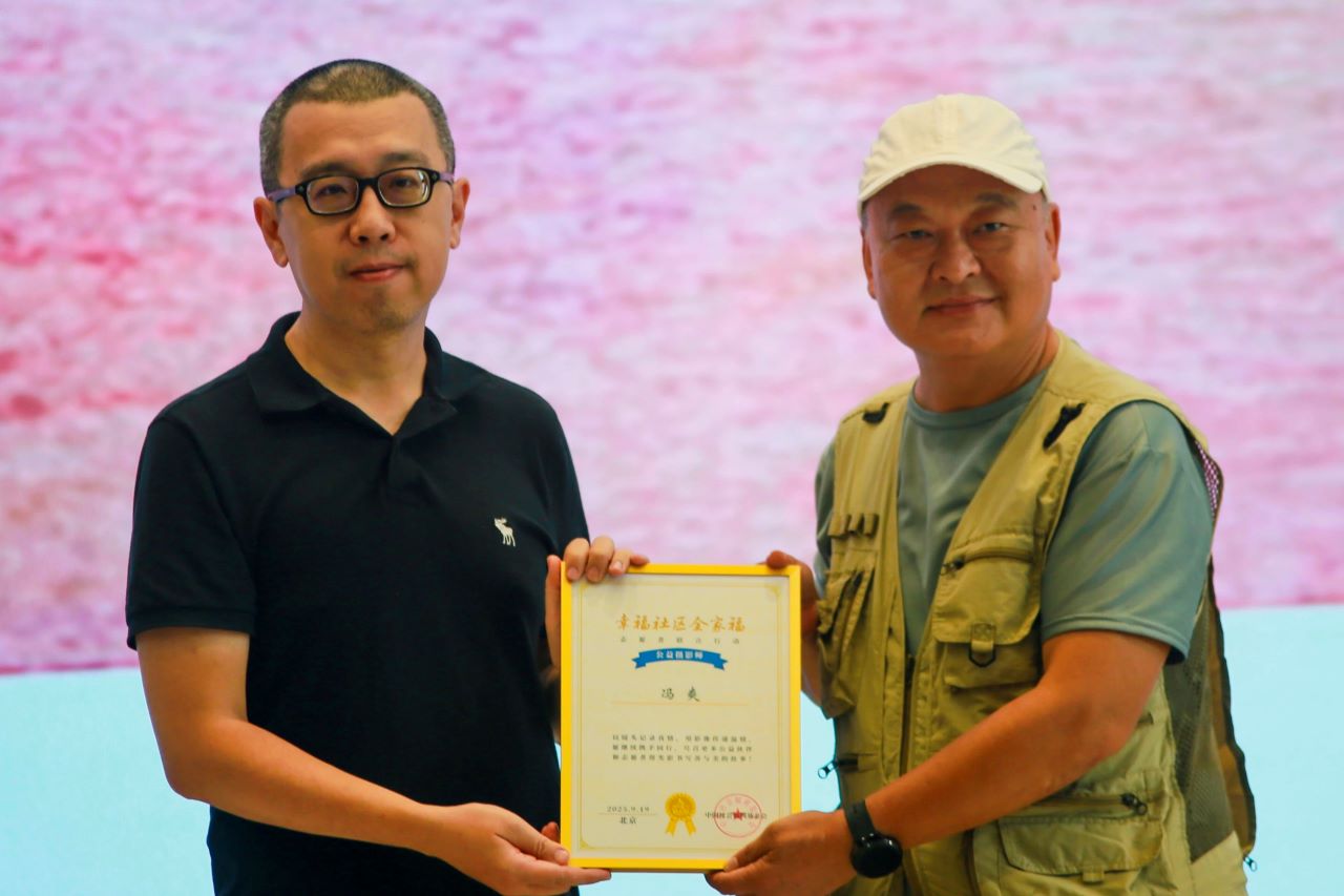 中国社会福利基金会公益项目二部王伏虎主任向冯爽老师颁发公益摄影师证书