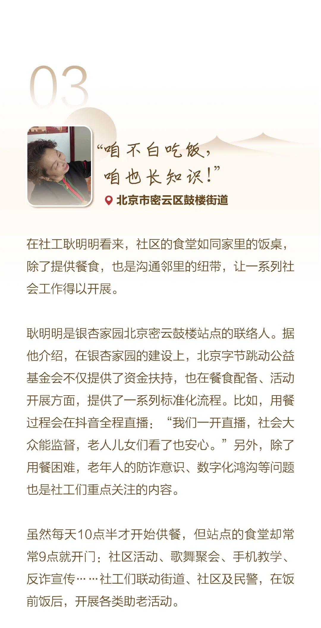 然而,对部分60岁以上的老人来说,这个问题不是源于“选择困难症”,而是实打实地让人犯难:他们中的许多人,已经没有精力买菜做饭,也没有子女在身边照顾,更不会上网点外卖。怎么吃饭,就成了大问题。
