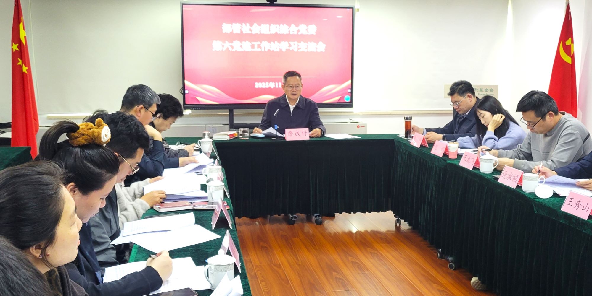 2025年11月4日下午,中国社会福利基金会牵头召开第六党建工作站全体成员单位学习交流会议,传达学习中国共产党第二十届中央委员会第四次全体会议公报、习近平总书记关于《中共中央关于制定国民经济和社会发展第十五个五年规划的建议》的说明、《中共中央关于制定国民经济和社会发展第十五个五年规划的建议》和民政部部管社会组织综合党委关于印发《部管社会组织学习宣传贯彻<习近平关于民政工作论述摘编>工作方案》的通知,研讨交流学习体会和下一步工作打算。民政部部管社会组织综合党委第六党建工作站党建指导员金伟同志和联络员赵娜同志莅临会议指导。中国社会福利基金会党支部书记、理事长兼法定代表人詹成付同志主持会议。