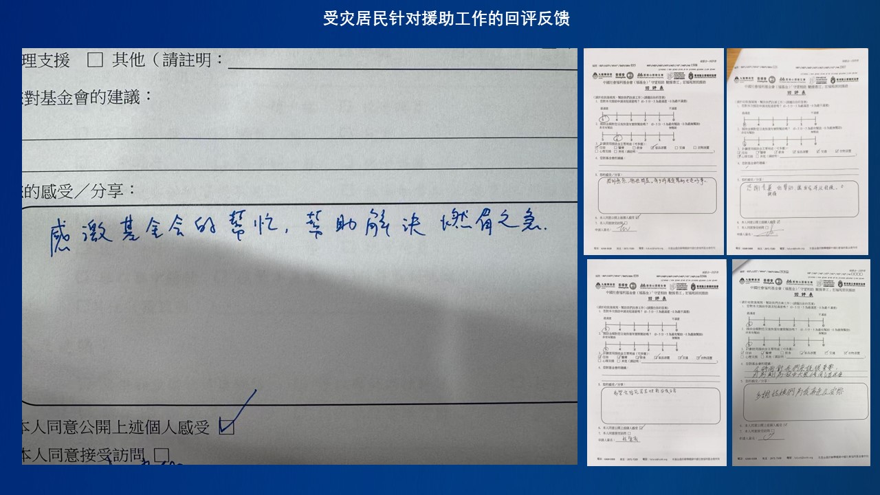 一、截至目前,我会合作的九龙乐善堂、香港善导会、香港心理卫生会、香港国际社会服务社及香港圣公会福利协会五家执行机构,已累计收到受灾群众援助申请833份。经严格审核,已完成506份材料的审批工作,累计发放援助资金折合港币1500余万元。为进一步提升申领效率,执行机构正根据实际操作反馈简化申请流程。同时,项目组正积极对接香港特区政府相关部门,通过统一核实受助人及“一户一社工”信息,确保善款发放精准、合规、高效。