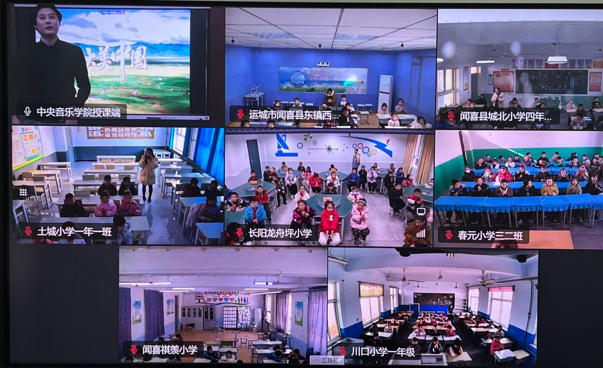 当屏幕亮起,音符飞越山川,孩子们的歌声与笑语从河北丰宁、湖北长阳、山西闻喜、四川南江的教室中同时传来——“授渔计划·美育课堂”再一次用跳动的音符,让欢快的旋律充满教室。